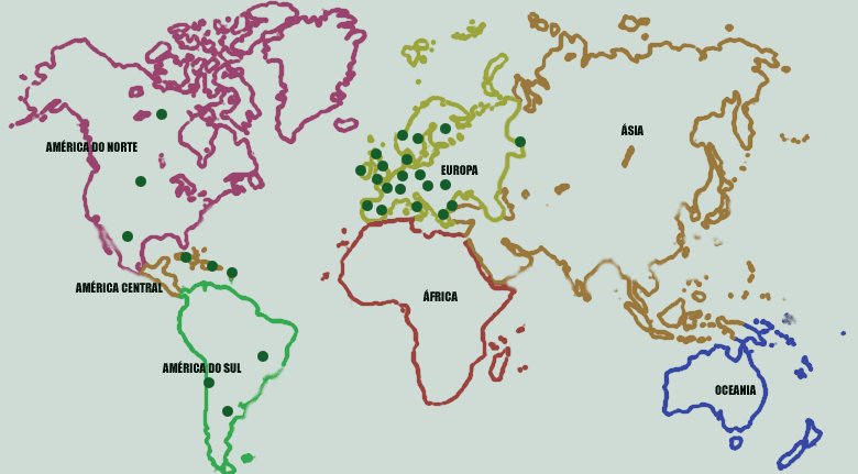 Passe o mouse sobre os continentes e veja os países onde a Thomasi atua.